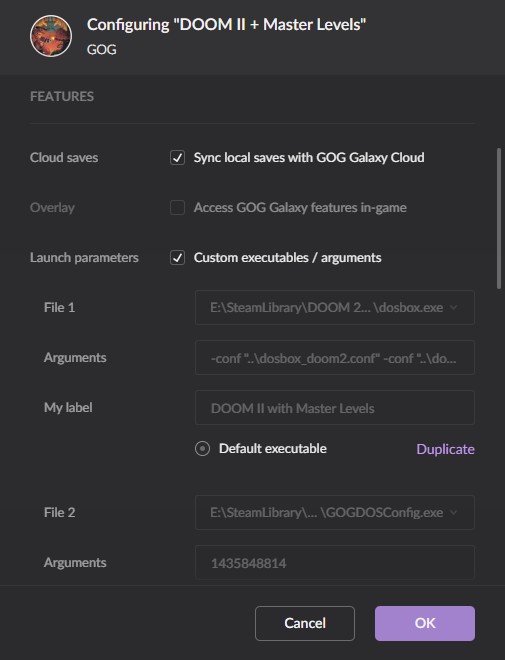 A GoG Galaxy 2.0 eredetileg DOSBoxszal telepíti és futtatja a Doomot, de a beállítások között meg lehet adni, hogy más alkalmazással induljon a launcherből. Ehhez a következőket kell tenned: